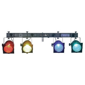 1x Par 56 showbar met 4x par 56 4x filterframe met kleuren (reeds gemonteerd) 2x ophanghaak (g-haak)