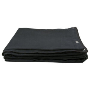 Theater backdrop doek is een zwarte brandvertragende molton doek met een afmeting van 6 x 3,5 meter en is voorzien van ophangogen en gordijnhaken voor het gemakkelijk monteren in truss.