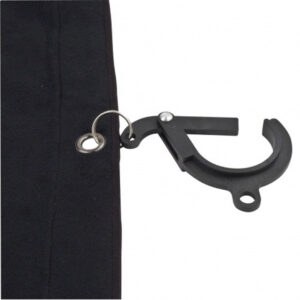 1x backdrop doek zwart 6 x 3,5 meter (inclusief ophanghaken)