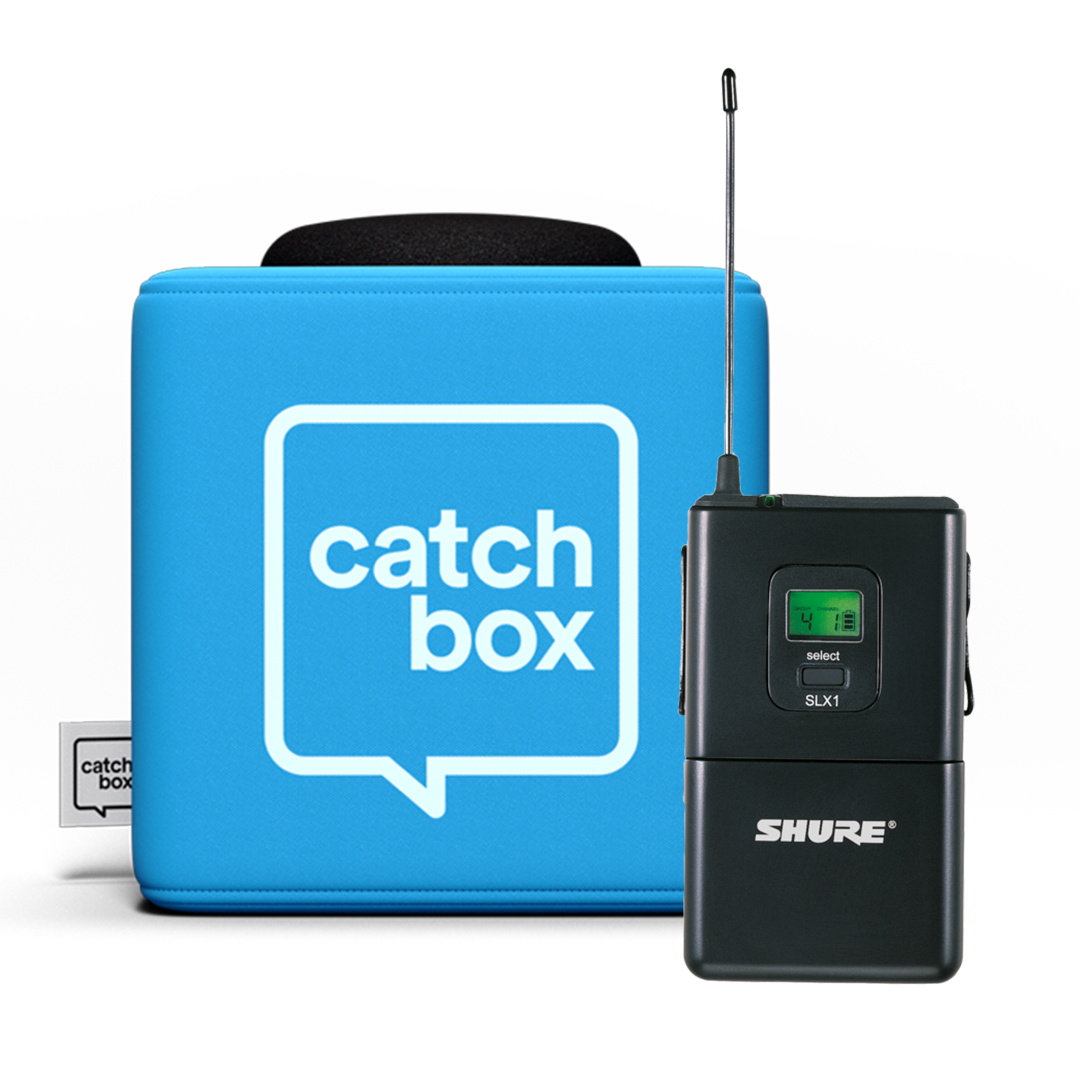 De Catchbox: een unieke werpbare publieks microfoon. De Catchbox is een echte publieks microfoon, door het werpen van de microfoon wordt het publiek meer betrokken bij het gesprek en verloopt het wisselen van de microfoon in vergelijking met de traditionele microfoon een stuk vlotter waardoor het allemaal veel interactiever wordt. De kubus is gemaakt van zacht en weerbaar materiaal zodat het gooien en vallen van de microfoon geen schade toebrengt aan mens, omgeving of de microfoon zelf. De unieke en slimme ingebouwde techniek zorgt ervoor dat tijdens het gooien van de kubus de microfoon tijdelijk dicht gezet wordt zodat er geen ongewenste geluiden optreden. Binnen in de Catchbox bevind zich een zogenaamde beltpack microfoon zender, dit maakt de Catchbox draadloos.