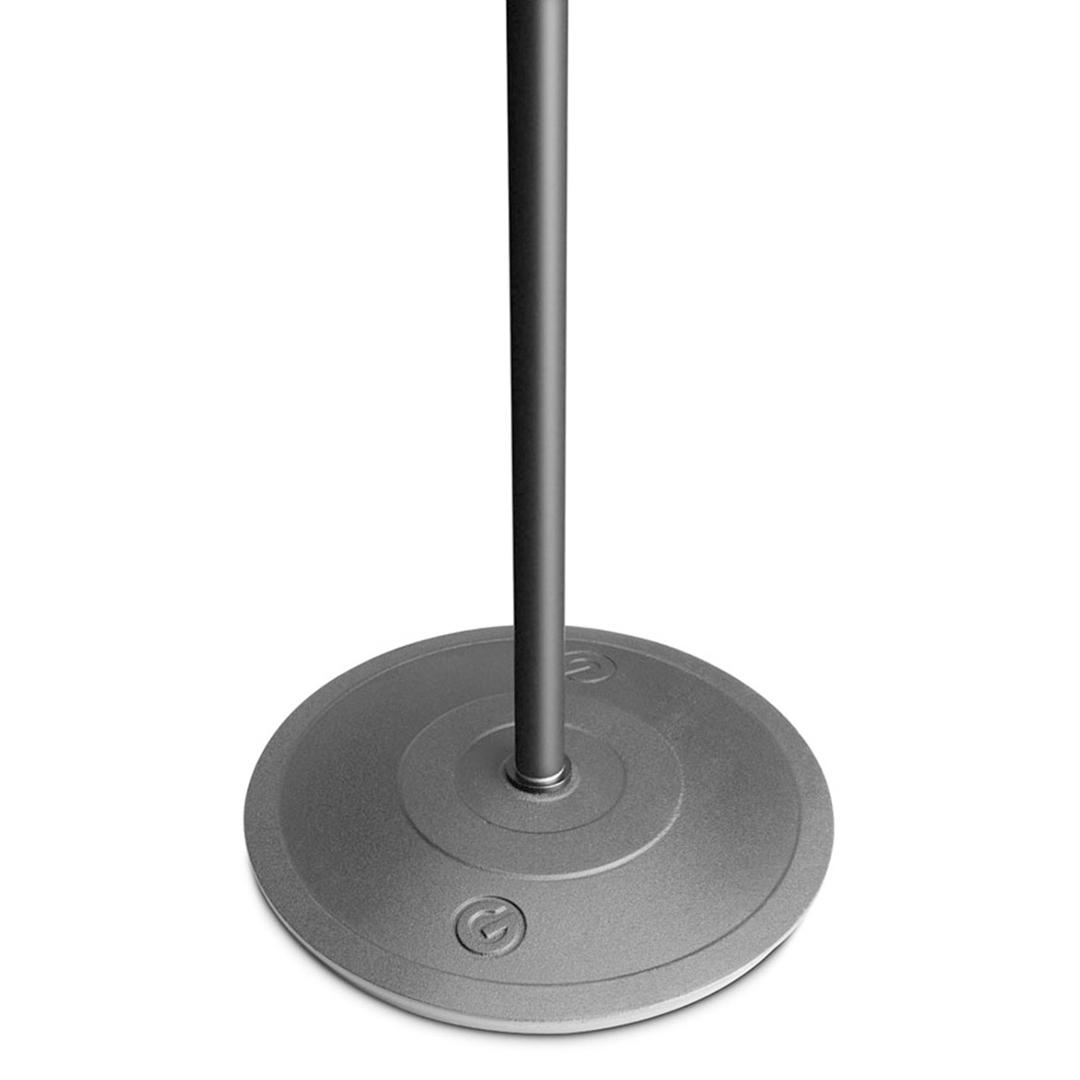 De Gravity GMS231HB Round Base microfoonstatief is gemaakt van gietijzer en heeft een zware ronde voet voor akoestische isolatie, oppervlaktebescherming en uitstekende stabiliteit.