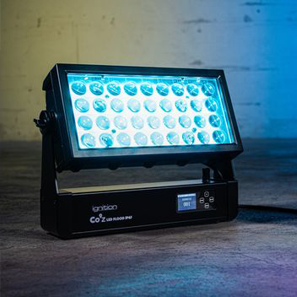 Ignition Co9Z LED flood zoom behuizing is IP65 en kan een regenbui of plens bier hebben, dat maakt deze lamp inzetbaar voor zowel binnen als buiten evenementen.