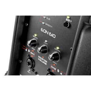 JBL EON 610 een compacte en actieve speaker die geschikt is voor diverse toepassingen, zowel spraak als audio met een maximale geluidsdruk van maar liefst 129db maximaal. De speaker kan geplaatst worden op tussenpalen (indien u gebruik maakt van subwoofers waar de tussenpaal op gemonteerd kan worden) of luidspreker statieven. De JBL EON 610 actieve speaker is voorzien van 2 XLR/ jack combi ingangen. Dankzij de stevige voorversterking kunt u deze compacte monitor gebruiken in combinatie met bijvoorbeeld een microfoon. JBL heeft de EON610 voorzien van een ingebouwde mixer waardoor u met deze luidspreker direct aan de slag kunt.