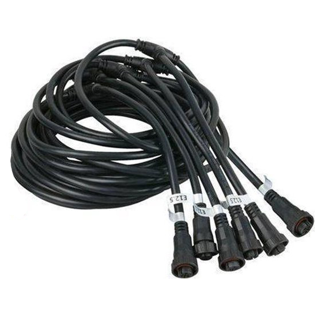 DMT P12/E6 voedingkabel 6 voudig is een 220v stroomkabel met 6 aansluitingen om 6 DMT Pixelscreen modules tegelijkertijd te voorzien van stroom. Met de stroom doorluskabels die op de DMT Pixelscreen modules zitten verbind je alle andere Pixelscreen modules ‘in serie’ met die ene Pixelscreen module (let op!! hier zit een maximum aan ivm stroom limiet!! verschilt per Pixelscreen module).