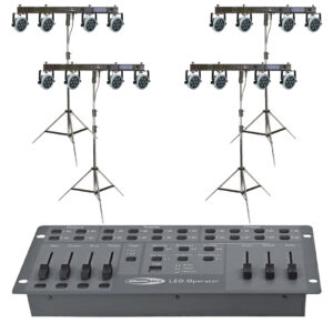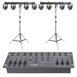 Par 56 showbar is een compacte bar met 4x par 56 spot met 300 watt lampen geeft deze par 56 bar een flinke licht output met een brede afstraling.