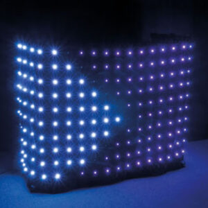 Op dit LED gordijn zitten 220 RGB leds, welke allemaal afzonderlijk van elkaar werken. Je hebt de volledige vrijheid in het bedenken van patronen en/of programma’s. Op de meegeleverde SD-kaart, die je in de SD-kaartlezer van de eveneens meegeleverde controller kunt stoppen, staan al dertig patronen en/of programma’s. Ook kun je zelf nog wat patronen en/of programma’s opslaan op de SD-kaart. De patronen en de programma’s kun je via DMX oproepen, automatisch laten afspelen of op de maat van de muziek laten afspelen.