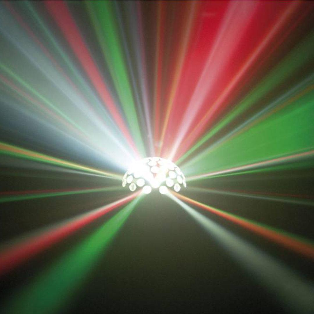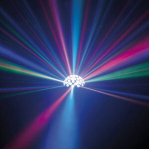 Dit is de grote broer van de Star LED DMX. De sunraise heeft 5 x 3 watt LED’s, wat zorgt voor een hoge lichtopbrengst. De rotatie is te regelen via DMX, maar hij kan ook geluid gestuurd worden. Zet hem op geluidsgestuurde modus en u hoeft er niet meer naar om te kijken. Dit effect kan gemakkelijk overal worden neergezet en hoeft dus niet opgehangen te worden.