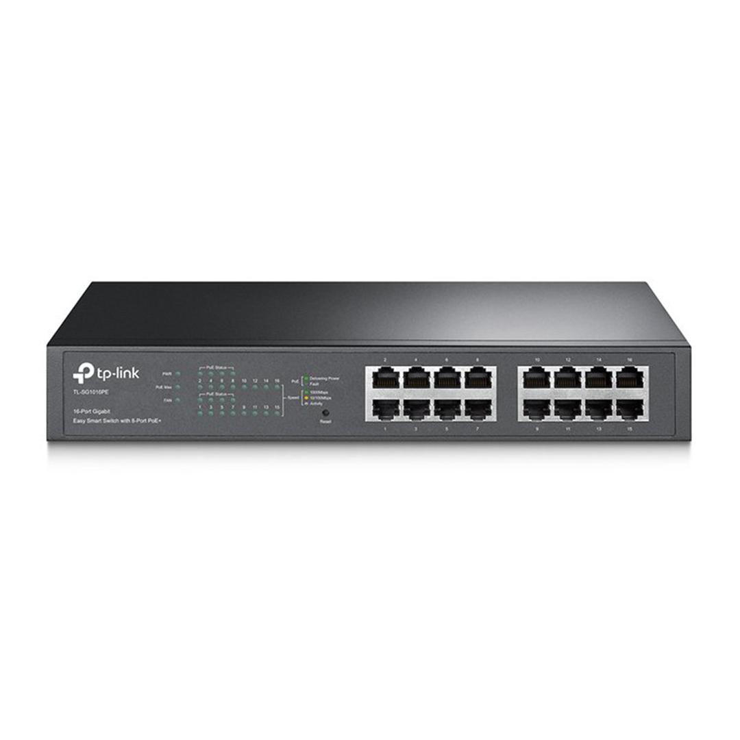 TP-Link netwerkswitch 16p PoE is een professionele gigabit netwerk switch met PoE te gebruiken om netwerken aan te leggen voor pc’s en beveiliging- of videocamera’s met PoE aansluiting voor eenvoudig aansluiten met 1 ethernetkabel per camera.